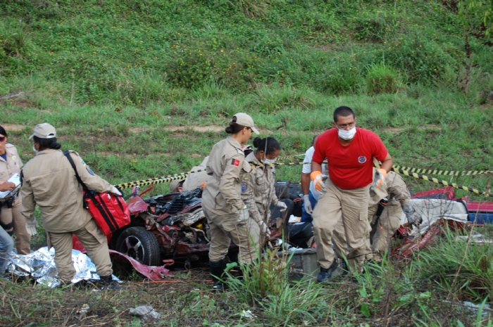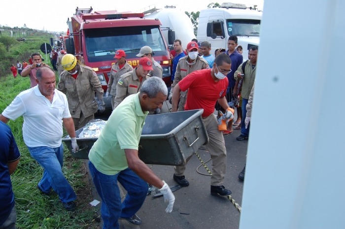 Bombeiros tiveram trabalho na retirada dos corpos Foto:Portal InfonetNa manhã desta sexta-feira, 12, o início da Operação Carnaval da Polícia Rodoviária Federal (PRF) foi marcado por uma tragédia no Km 94 da BR 101, no povoado Pai André, município de Nossa Senhora do Socorro: duas pessoas que estavam em um carro de passeio morreram após colisão com um ônibus.